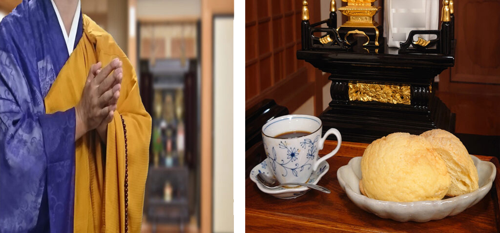 毎朝にはお食事のお供え、毎日ご命日にあたるご先祖様のお戒名(お名前)をお読み上げ、ご先祖様を心からお供養致します。